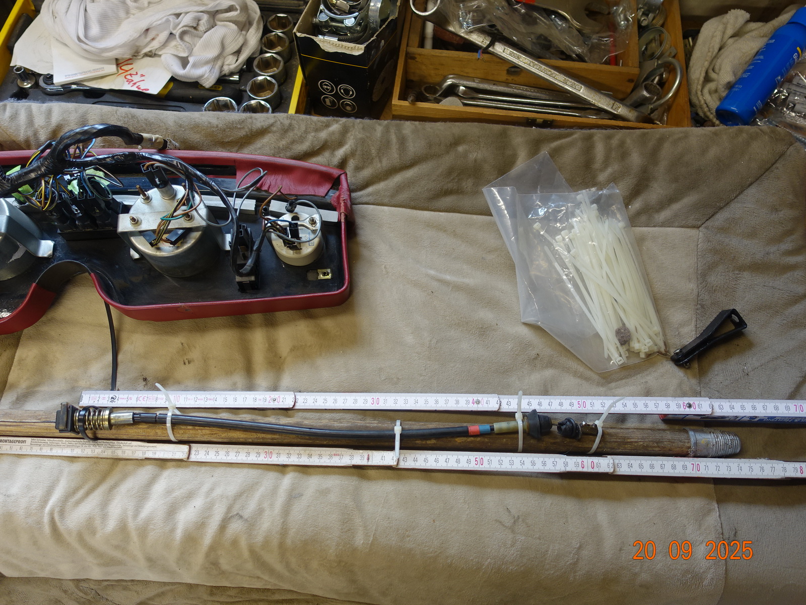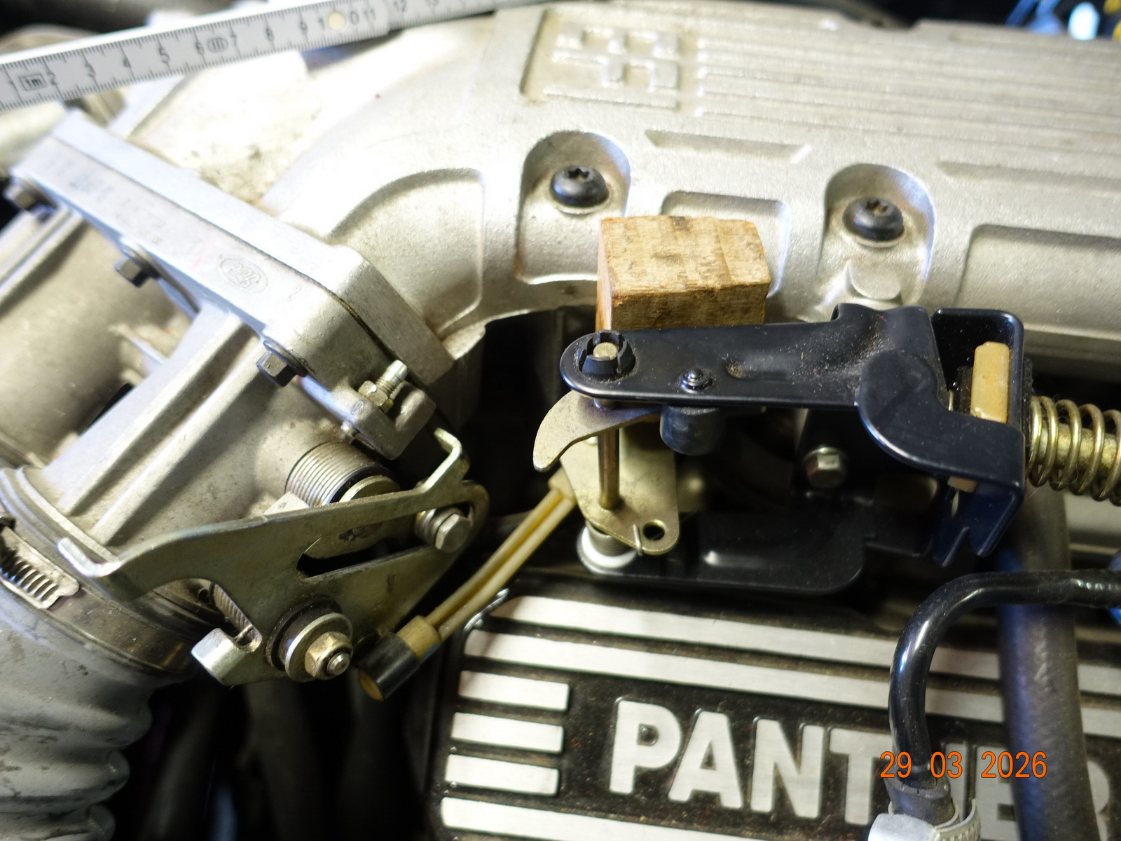 Der Gaszug machte mir große Sorgen. Motomobil konnte ihn nicht besorgen. Fa. Taflexa konnte aufgrund fehlender passender Ersatzteile keinen neuen bauen. Ein Pantherfreund sendete mir einen Link auf ebay England. Leider war dieser Gaszug für Tempomat. Aus meinem alten Gaszug und dem neuen teilweise passenden Gaszug hat mir Fa. Taflex einen passenden gebaut.