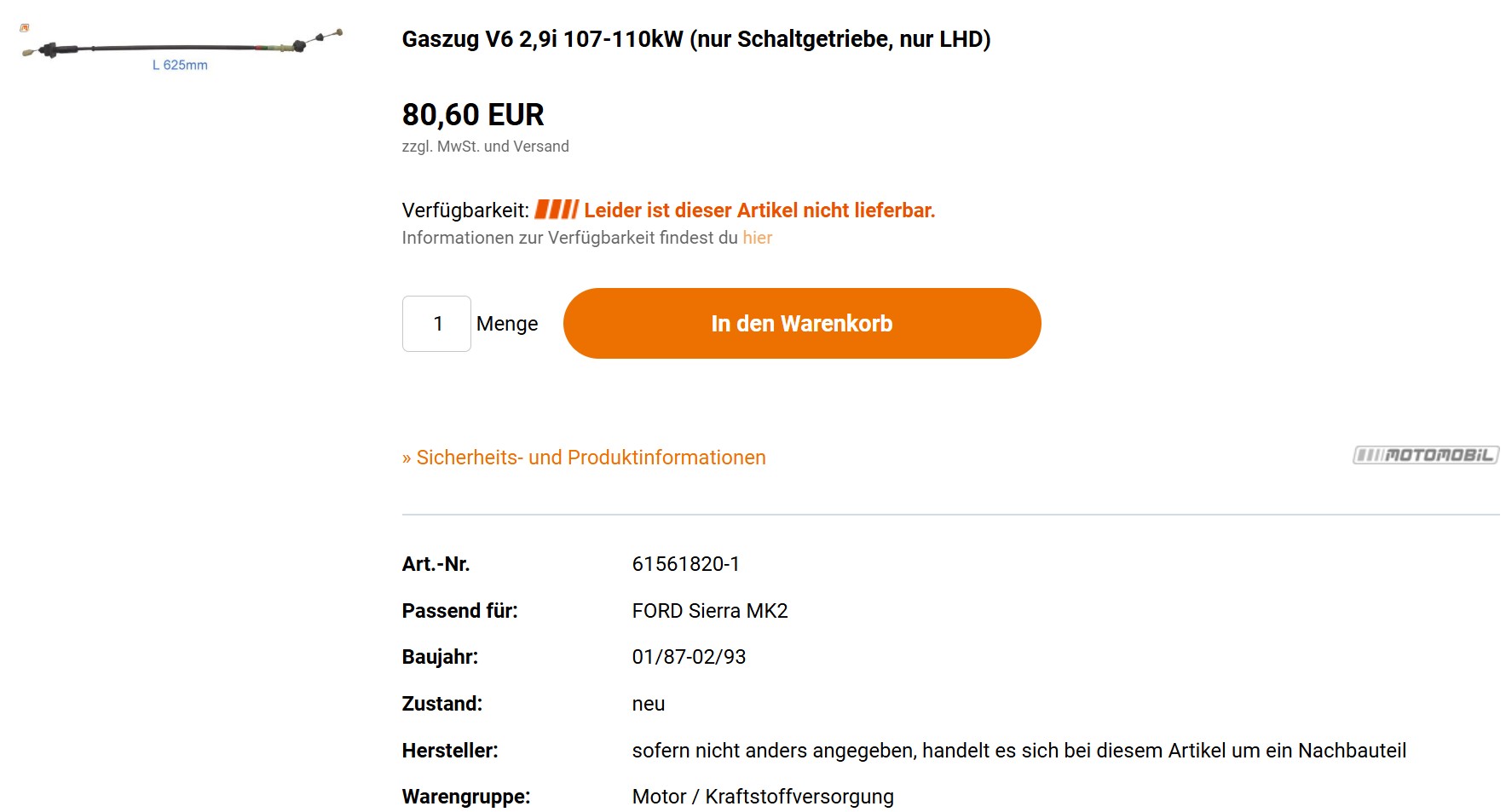 Der Preis ist absolut fair! und noch wichtiger, der Gaszug wurde perfekt.
