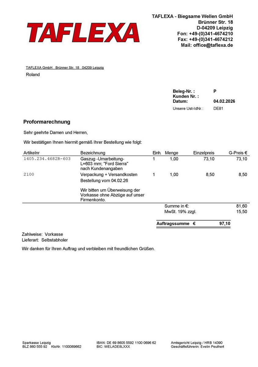 Die Firma hat einen sehr guten Service! Bis der Gaszug fertig war hatten wir mehrere Telefonate was möglich ist und wie wir am besten zum Ziel kommen.