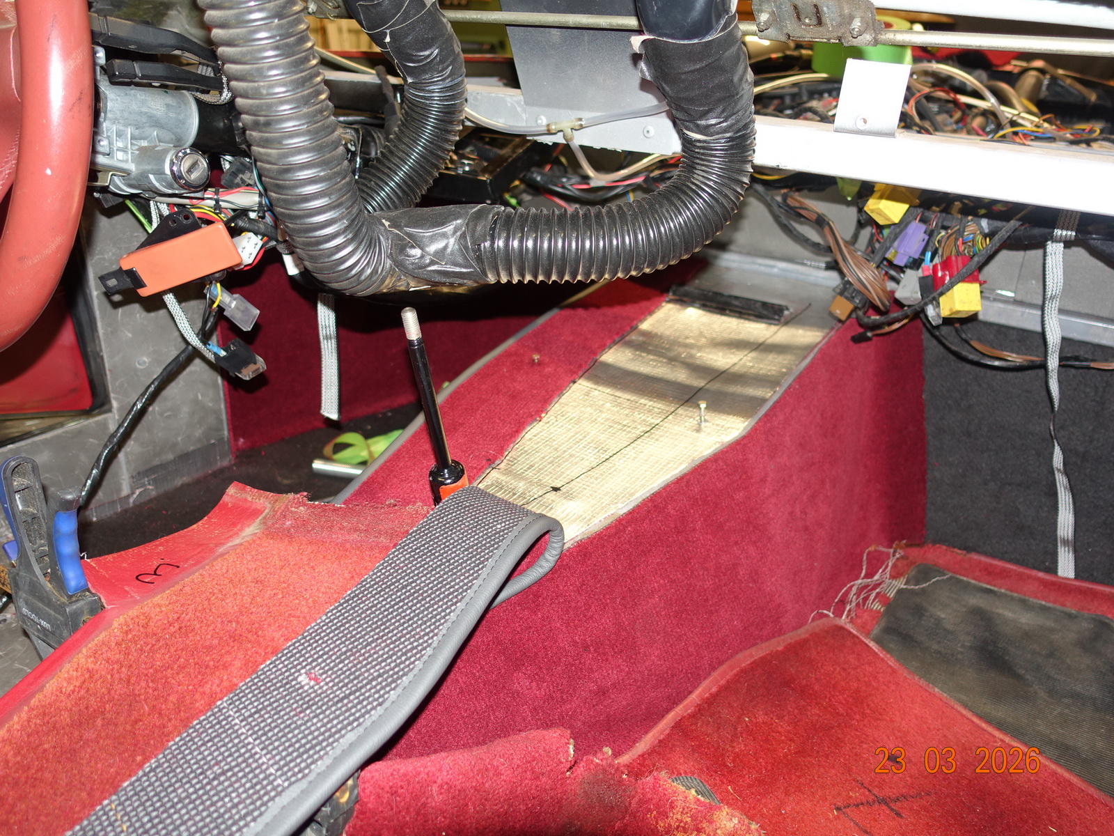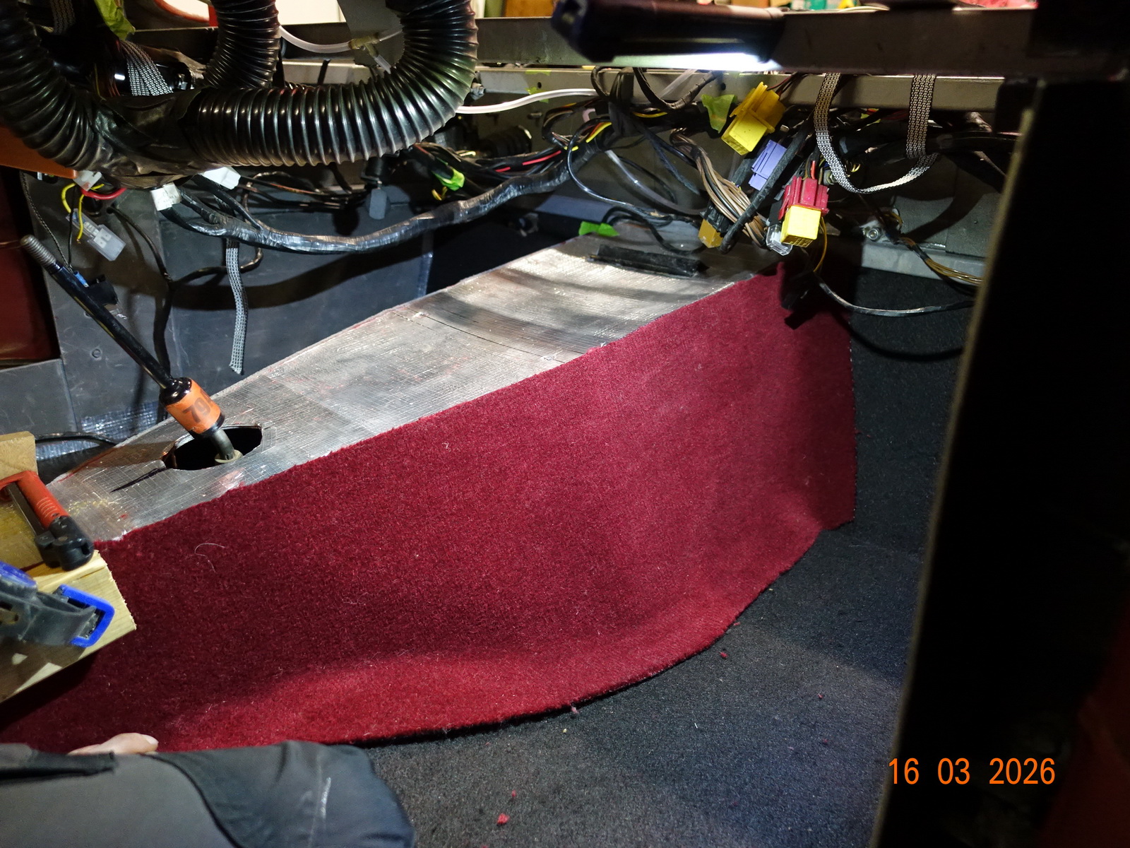 Leder und Teppiche sollen neu. Leider hat sich herausgestellt, das beim Bau des Kallistas der Teppich sehr früh verlegt wurde. Der Wärmetauscher musste deswegen ausgebaut werden. Zusammen mit dem Armaturenbrett wird es eine komplette Winterarbeit.